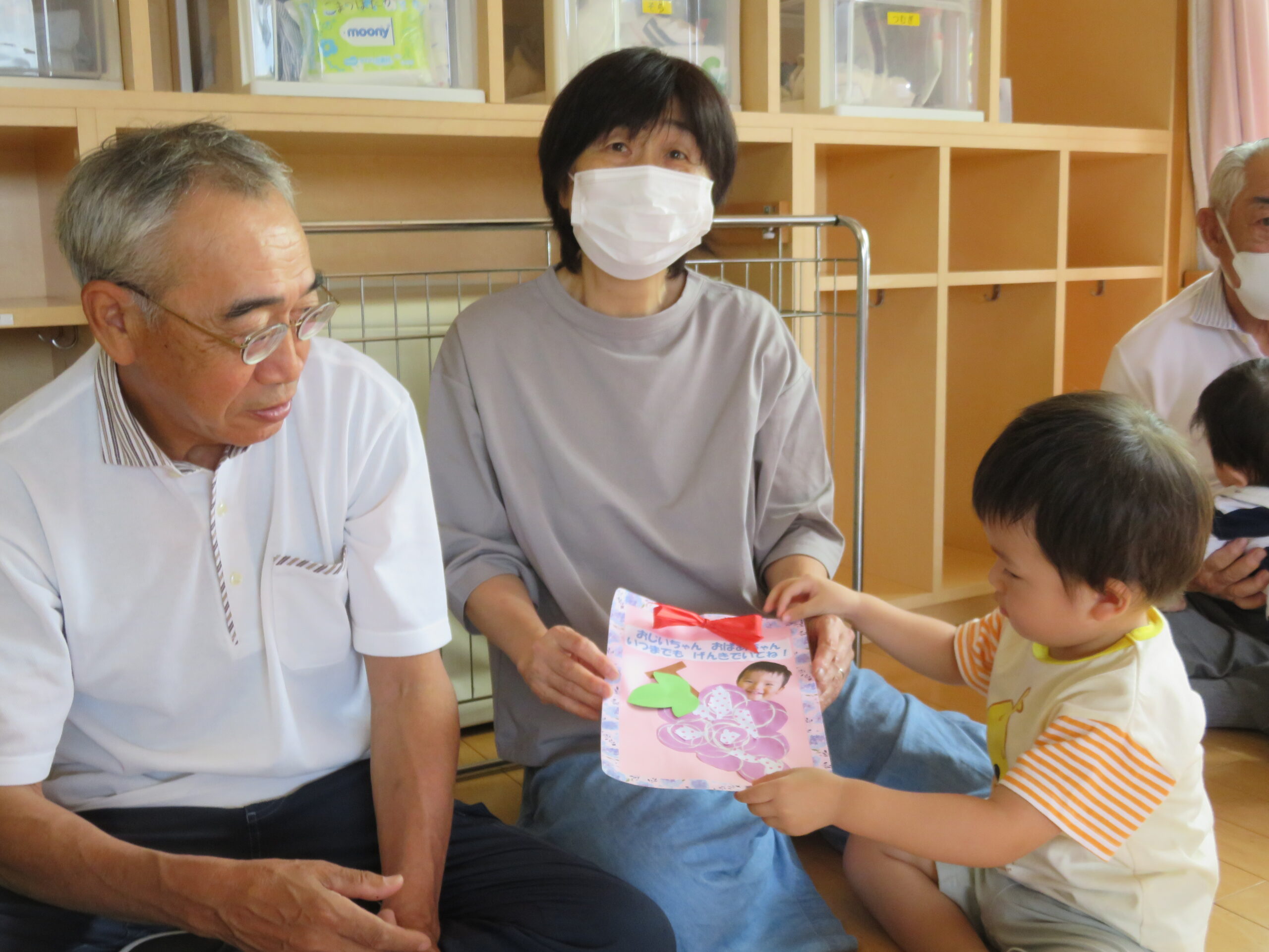 子ども達はにこにこ笑顔で、おばあちゃんやおじいちゃんと登園していました😊