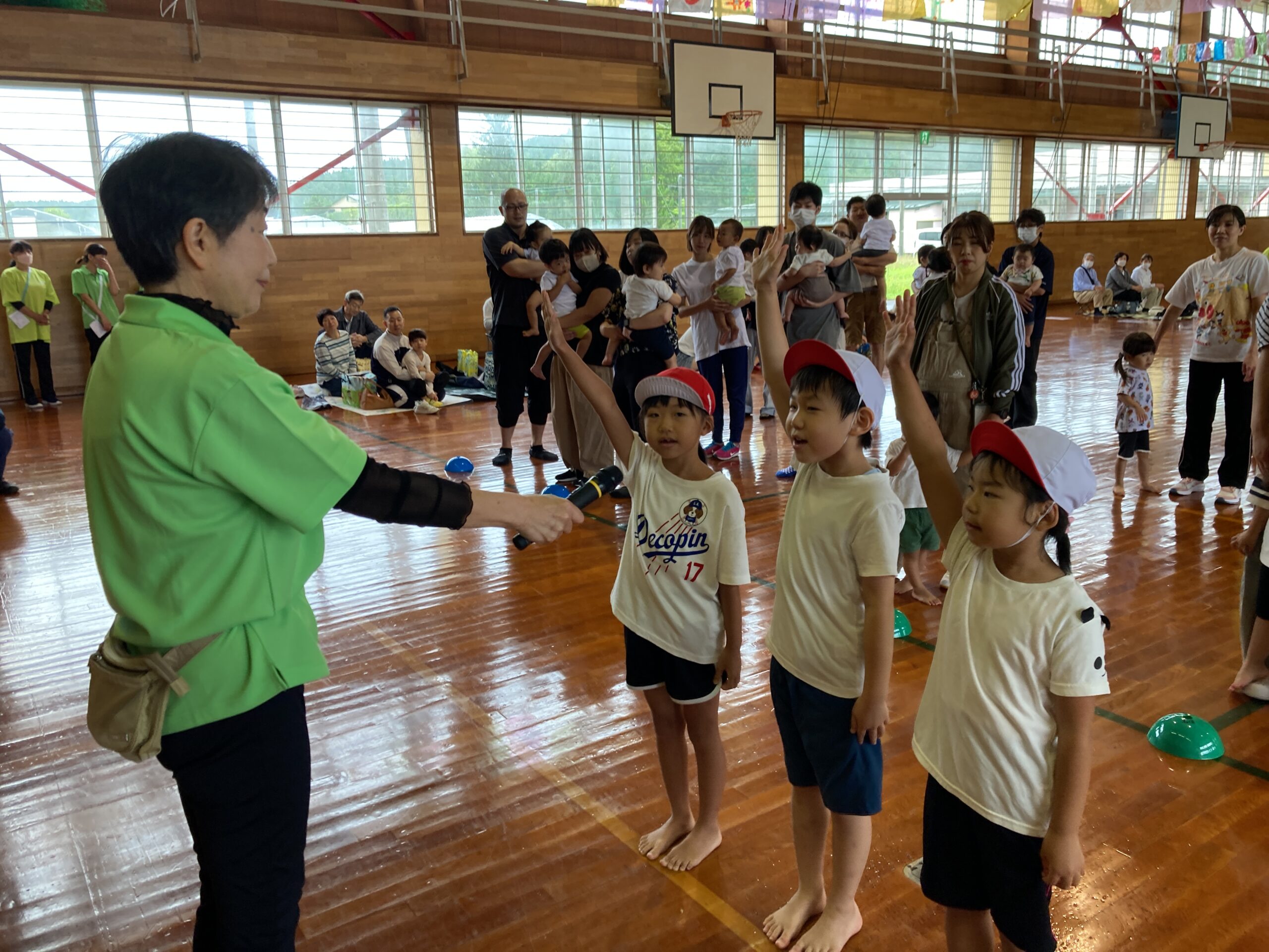 準備体操「めっちゃげんき体操」 小さいきりん組さんが「体操のせんせい」になり、一生懸命頑張りました👏