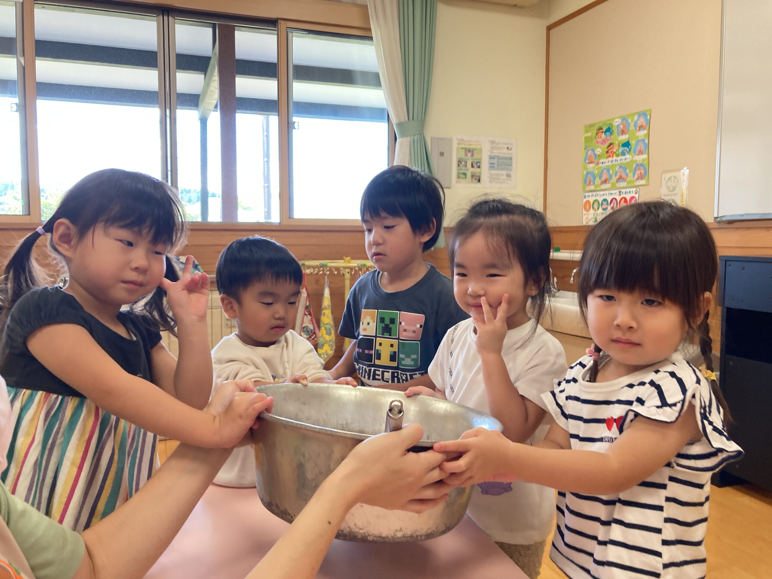 3~5歳児さんがカレーライスを、2歳児さんがフルーチェを作ってくれました!
