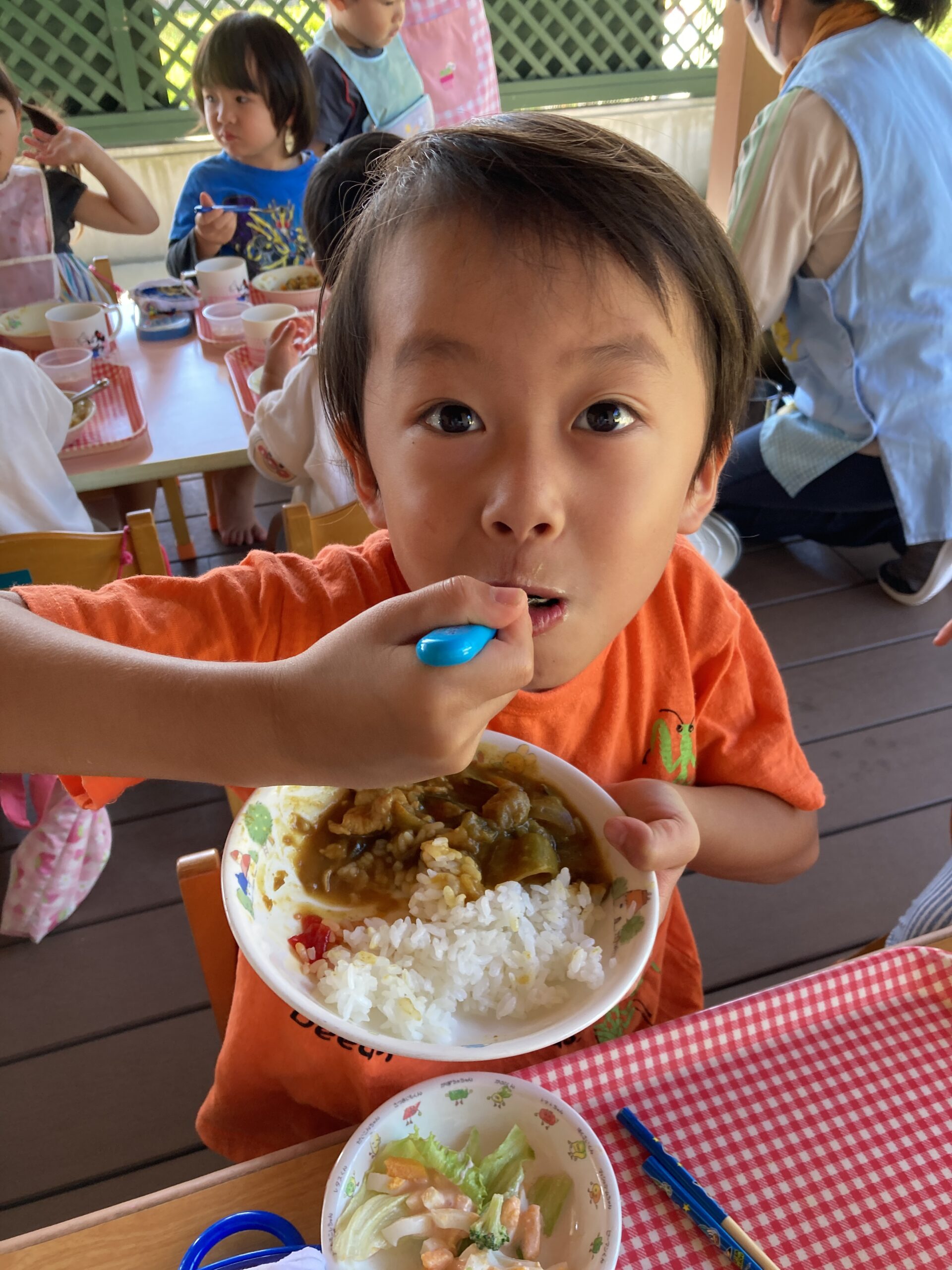 できたて、アツアツのカレーを食べました! 「おいしいよ!おかわりするんだ!」と教えてくれました。