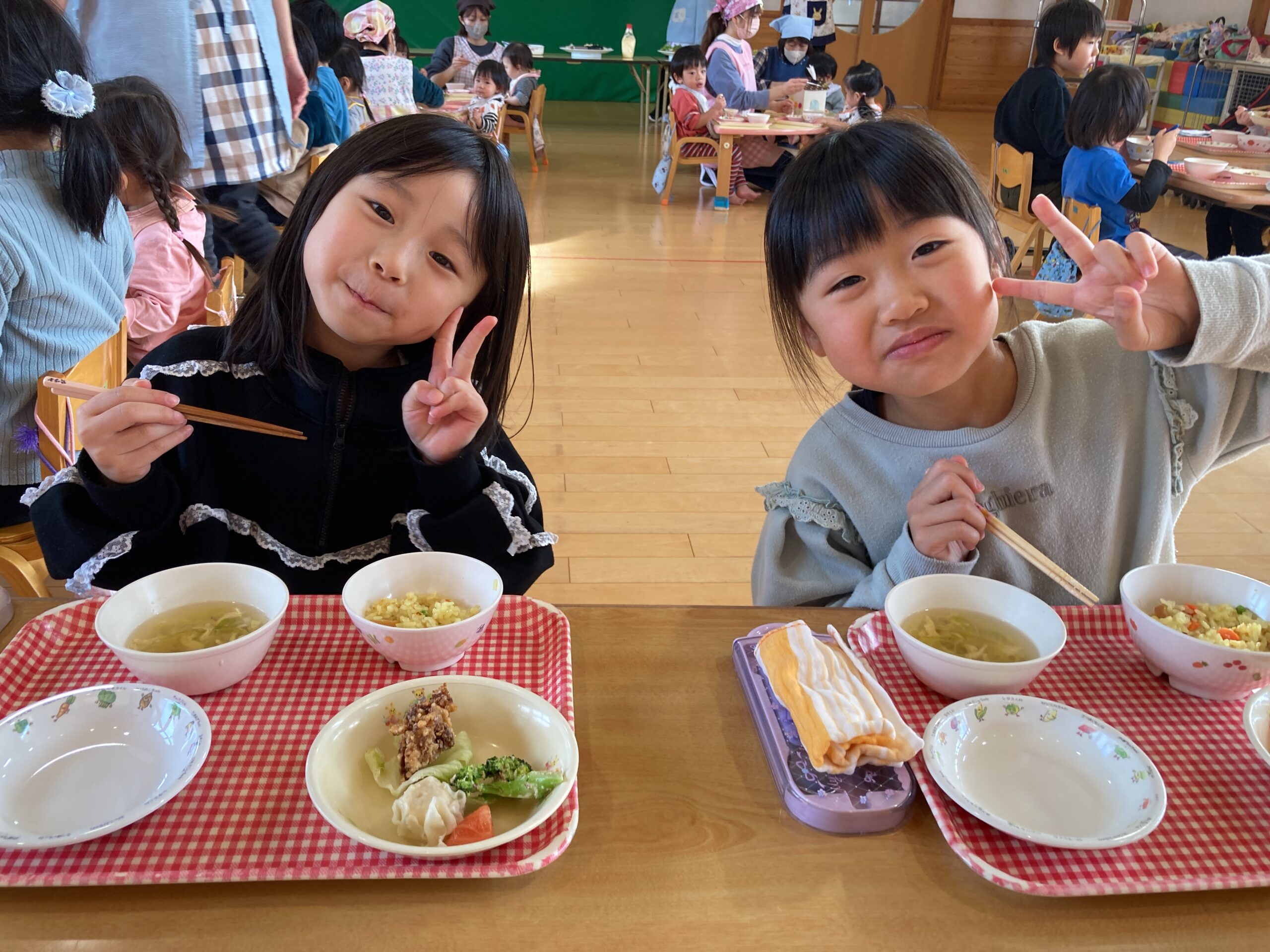 全園児がホールに集まって、みんなで食べました😋
